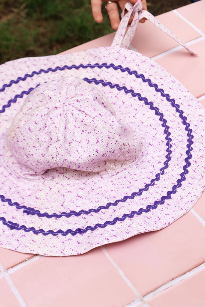 - Purple ricrac sun hat, with sweet ties to keep her on