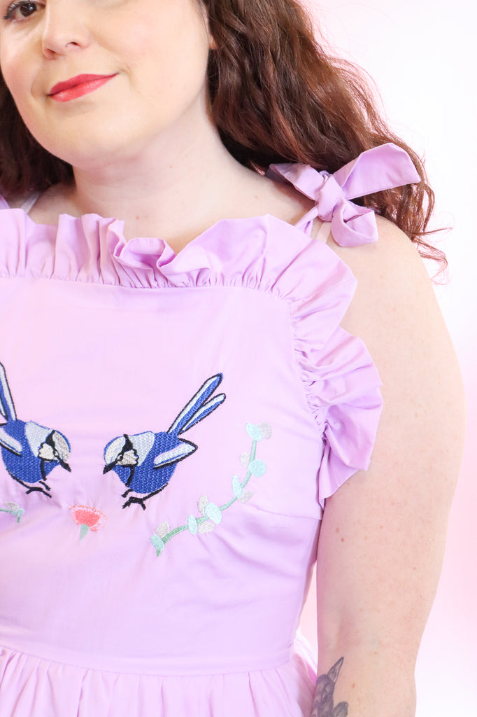 I’ve brought this frilly delight back with a verrrry cute Fairy Wren design. Complete with delicate eucalypt leaves and wattle flowers! Just enough fabric to make 4 in this colour.